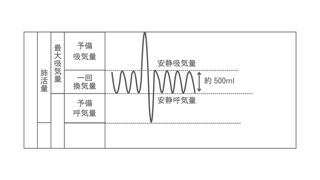 一回換気量とは、一回の呼吸で肺に出入りする空気の量を示しています。