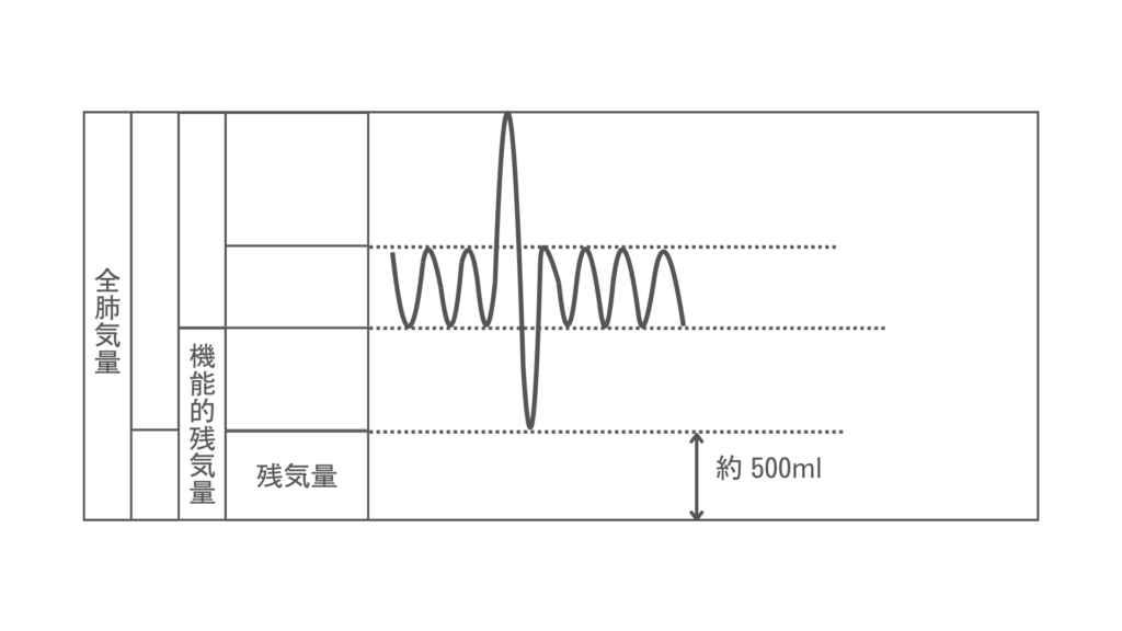 検査で最大限に息を吐いても肺内には空気が残っています。これを残気量と呼び、標準的な成人では約500mlと言われています。