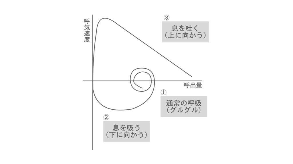 スパイログラムは、呼吸機能検査に使われるスパイロメーターという装置から測定できるグラフです。