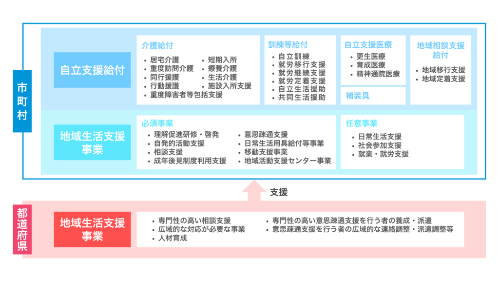 障害者総合支援法のサービスは、主に市町村が行っています。