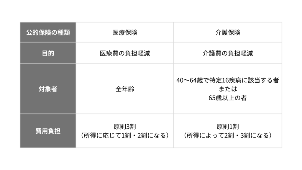 医療保険と介護保険では、自己負担額や訪問頻度が異なります。